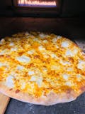 White sauce pizza, chicken, bacon, ranch & mozzarella.